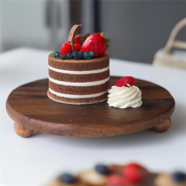 Akayev Ahşap 20 cm Ayaklı Sunum Tabağı - Pasta Tabağı - Doğal Sunumluk
