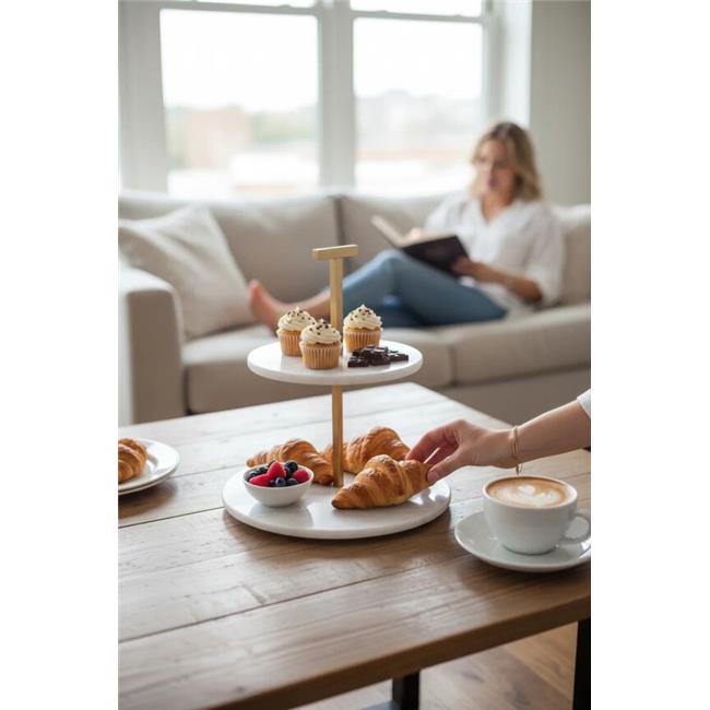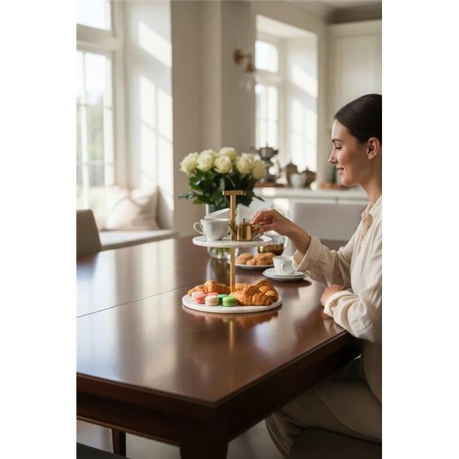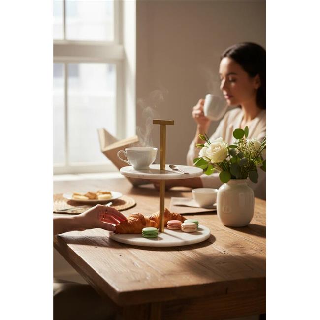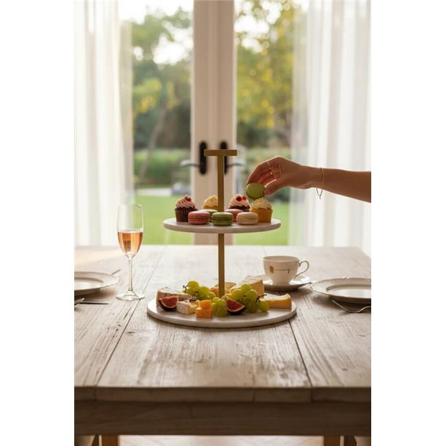 Akayev Mermer Beyaz 25 Cm Mat Altın İki Katlı Sunum Tabağı