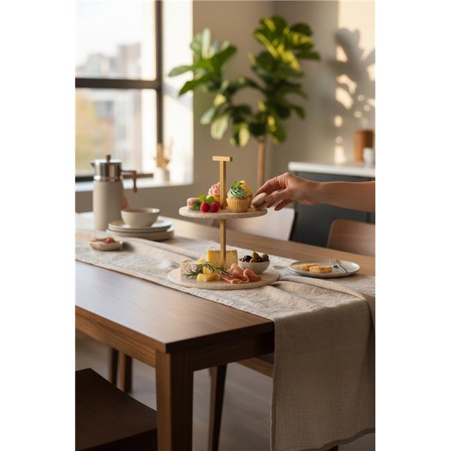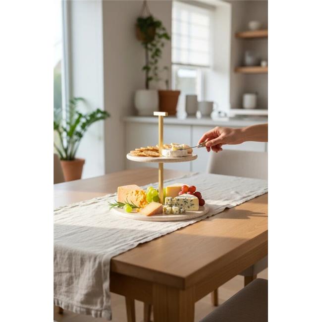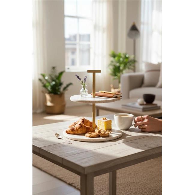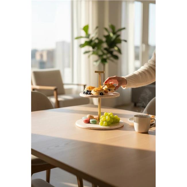 Akayev Traverten 25 Cm Mat Altın İki Katlı Sunum Tabağı