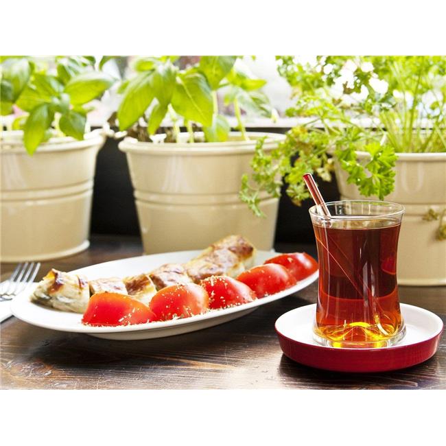 Bardağın tabanı ile tabağını iç içe geçiren tasarım, köklü bir kültürün mirasıdır. İstanbul çay bardağı takımında, bardaklar içinde renk olmayan camın en şeffaf ve berrak hali kristalin camından, çay tabaklarıise oldukça dayanıklı bir malzeme olan satin porselenden üretilir.