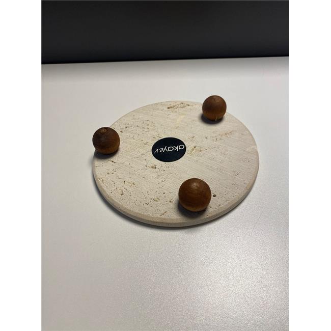 OUTLET Akayev Traverten 19 Cm Ahşap Boncuk Ayaklı Sunumluk
