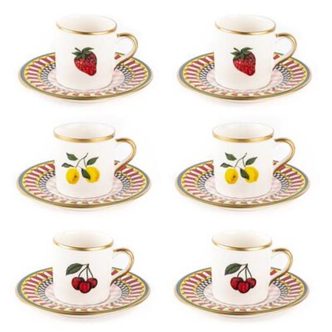 Tantitoni 006-01-Gold Yaldızlı Meyve Desenli 12 Parça Kahve Fincan Takımı